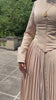 Slip into enchantment with the Celeste gown, a luxurious piece that captures fairytale elegance. Crafted from sumptuous soft satin, this relaxed-fit design features graceful pleating and a refined high neckline that frames the shoulders beautifully. Signature v-shaped cuffs adorned with golden buttons add a regal touch, while the detachable corset allows you to customize your silhouette. The fabric's exquisite drape creates a princess-worthy presence for any occasion.